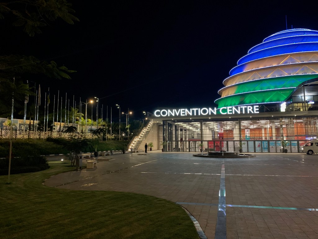 The afternoon was somber but gave me a much greater understanding of and appreciation for the dramatic changes that Rwanda has made, particularly concerning the rights of women and underrepresented groups. With my excitement for the conference at an all-time high, I went to bed embarrassingly early, exhausted after the travel of the night before. A 20-minute walk from our hostel, the Kigali Conference Center stands in the middle of downtown. Its a funky looking building. Shaped like a beehive, I personally think it is pretty ugly during the daytime, but at night it is beautifully lit, making it much more appealing to the eye.